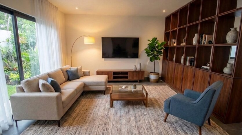 Espacio para sala de TV, dividida con celosía decorativa.