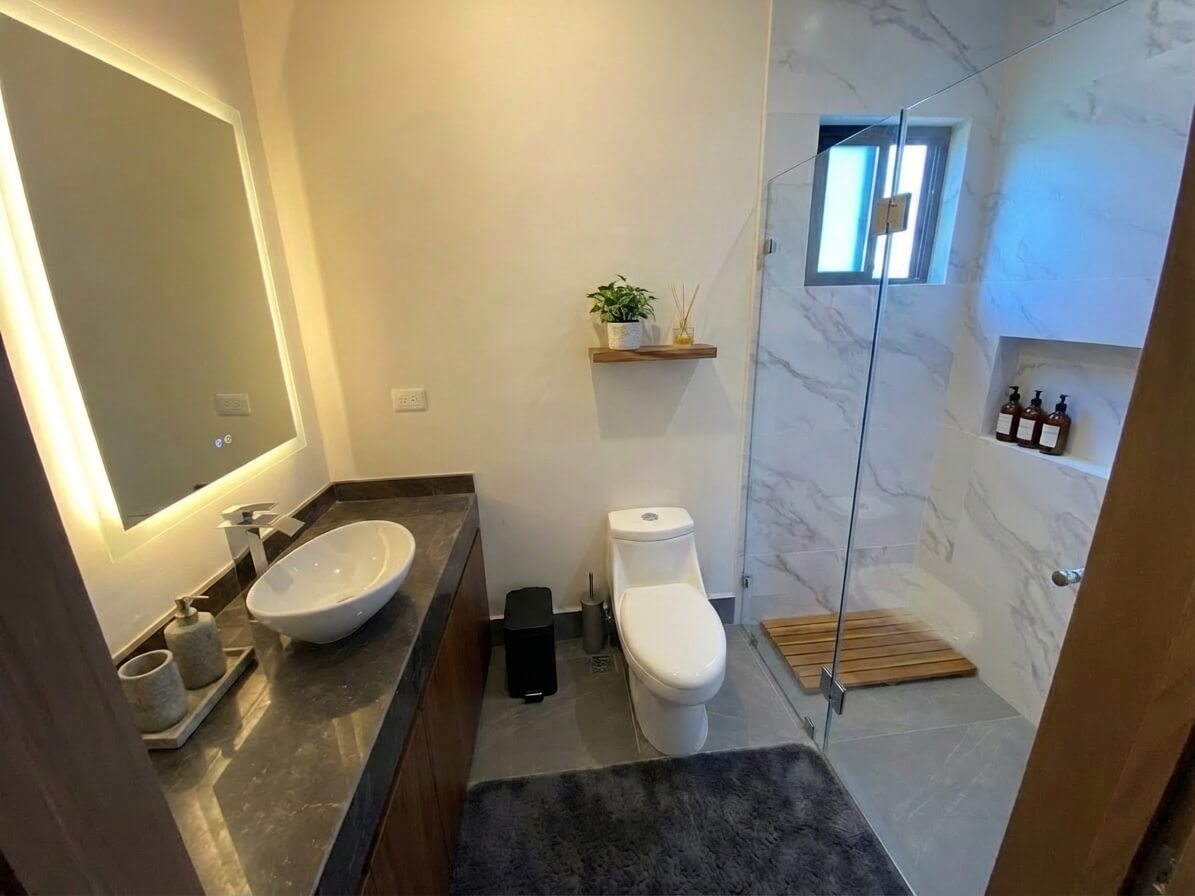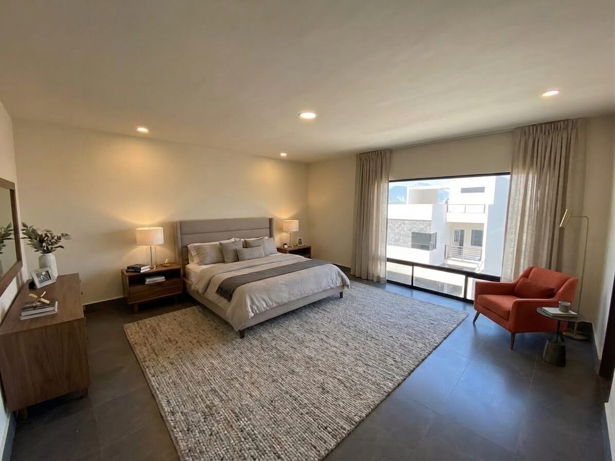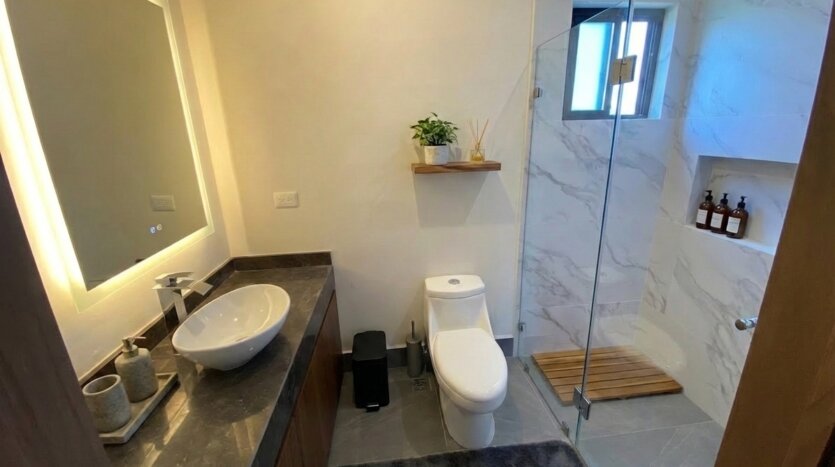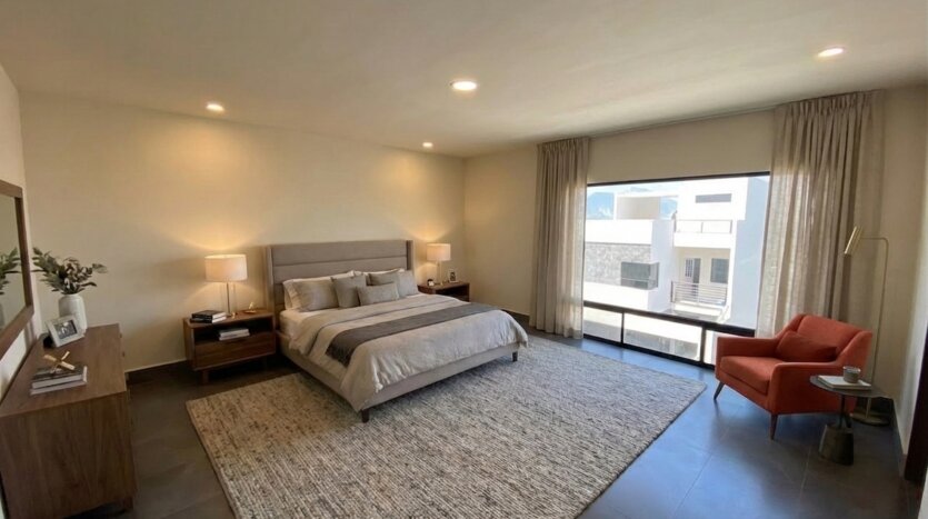 3 recámaras: amplia recámara principal y dos secundarias, todas con baño completo y walk-in closet.