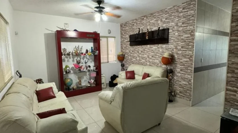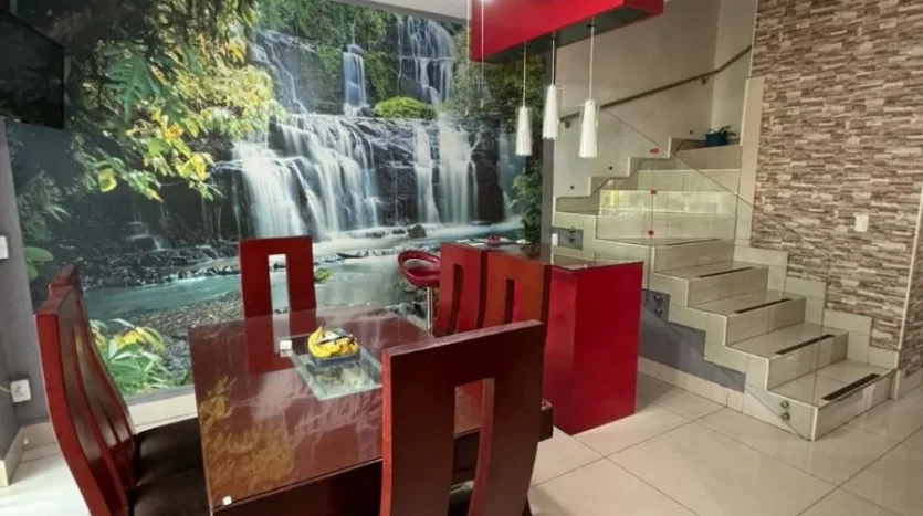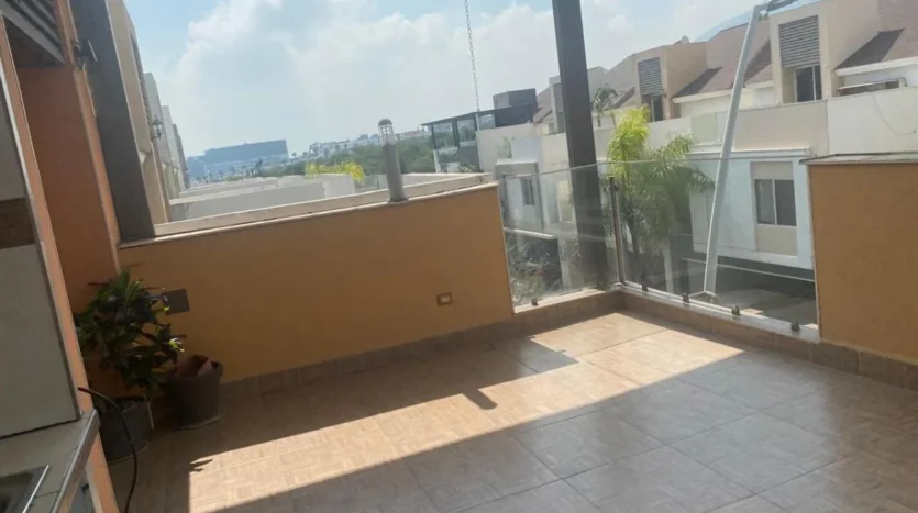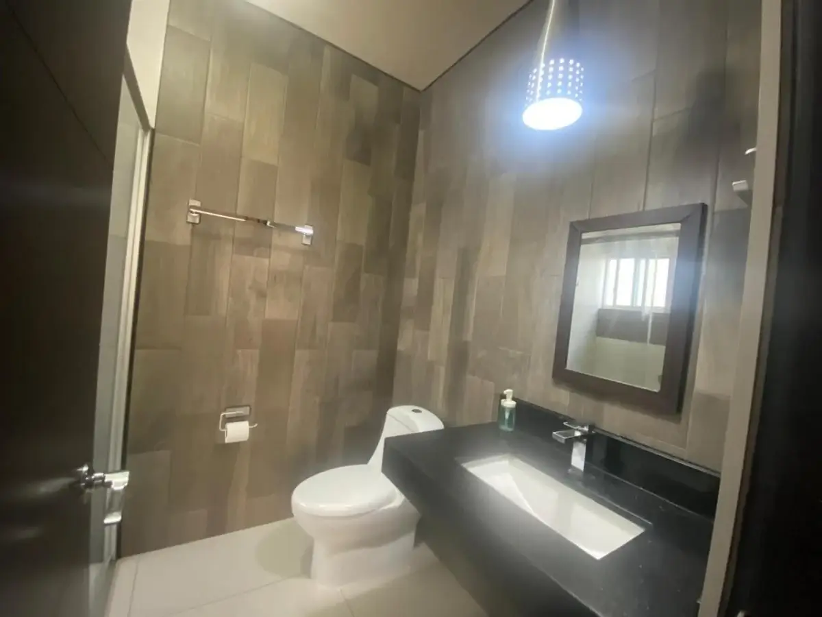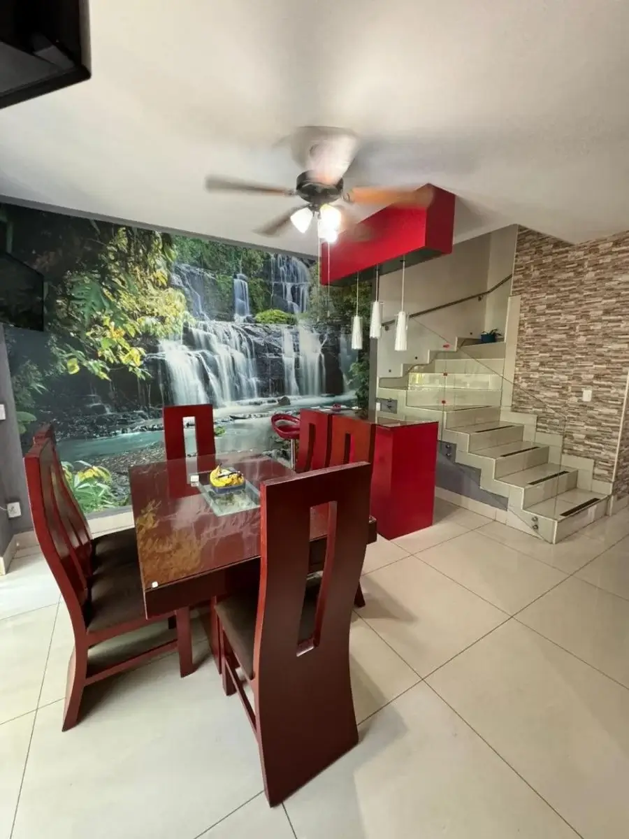 Elegante cochera techada para dos autos, amplia área social con sala y comedor de excelente iluminación natural, medio baño para visitas y una moderna cocina integral totalmente equipada. El comedor se integra de forma armoniosa con un acogedor patio jardín, ideal para reuniones y momentos de relajación.