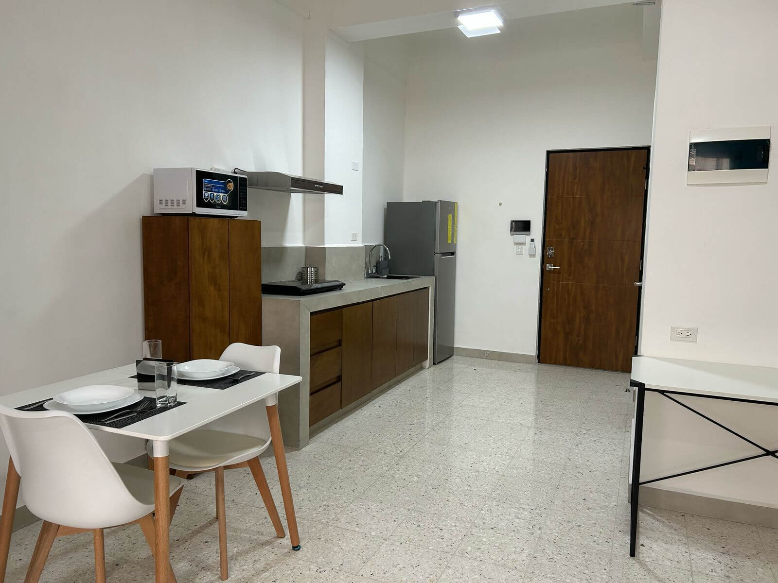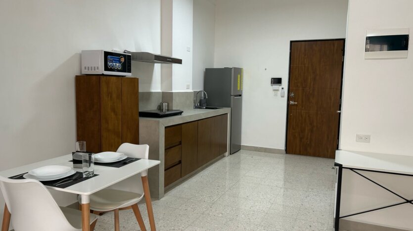 El departamento esta totalmente equipado y amueblado, cuenta con baño, y cocineta. En cada piso del edificio hay una area de lavado compartida, cuenta con lavadoras, secadoras y area de planchado. Los departamentos están diseñados para brindar comodidad y practicidad en cada detalle. Disfruta de espacios completamente amueblados además, contamos con seguridad 24/7, acceso controlado por piso, reserva de agua y generador de electricidad para emergencias.