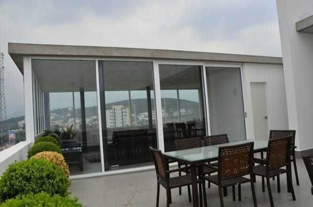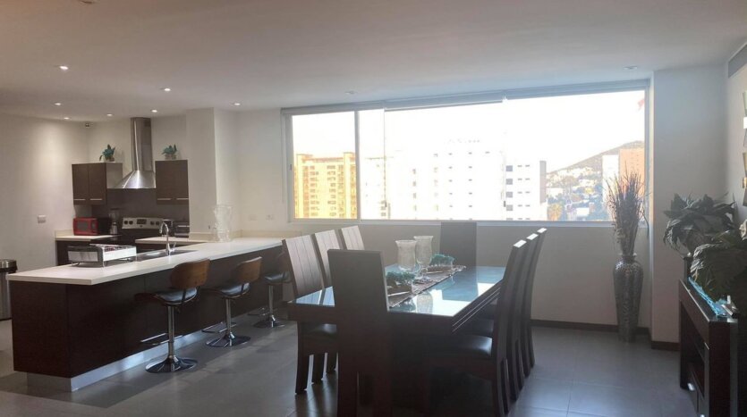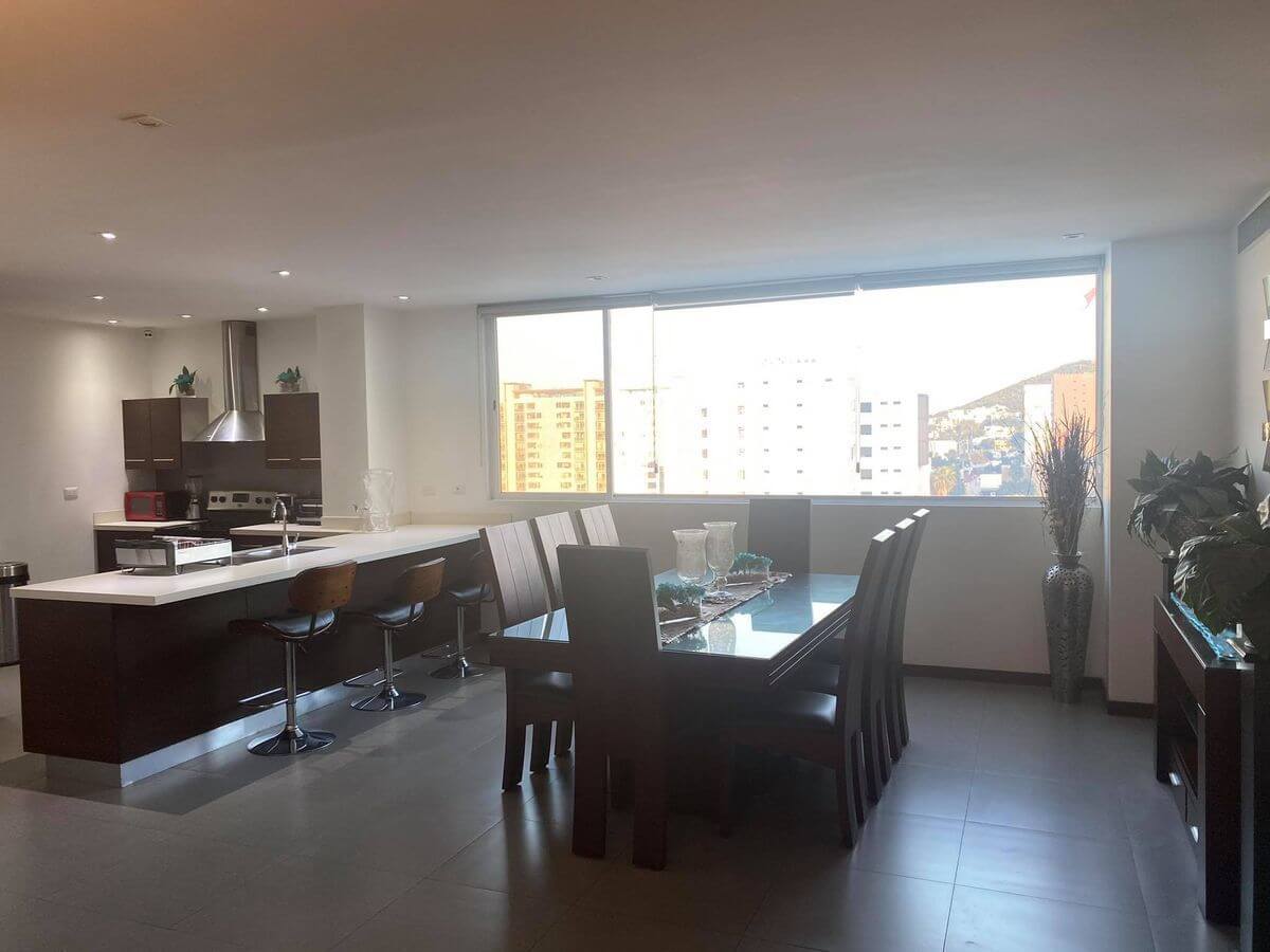 Área de sala comedor cocina amplia con vista al obispado y cerro de la silla.