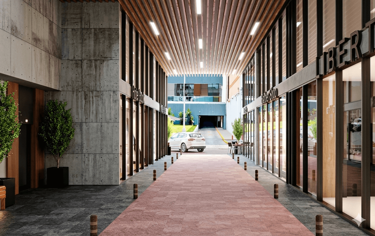 El proyecto cuenta con un carril de autos que cruza entre los locales, brindando visibilidad directa y exposición continua a quienes circulan por la zona, facilitando el acceso inmediato al establecimiento. Esta configuración favorece negocios orientados a servicios y consumo cotidiano.